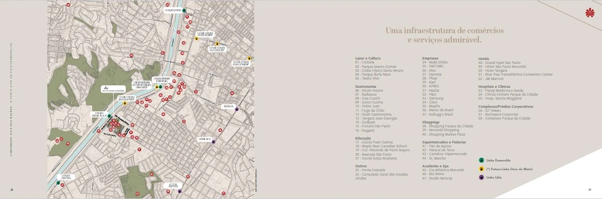 Centros empresariais da Berrini, Estação de trem da CPTM, Shopping centers, Restaurantes renomados, Escolas e serviços de alto padrão