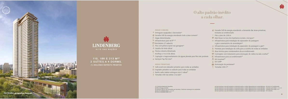 O projeto une arquitetura contemporânea, sofisticação e localização estratégica, com foco em conforto, exclusividade e qualidade construtiva, características marcantes da marca Lindenberg.