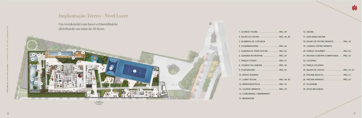 O condomínio oferece uma estrutura completa de lazer e bem-estar:, Piscina adulto com deck, Piscina coberta climatizada, Academia equipada, Espaço gourmet,Salão de festas, Brinquedoteca, Playground, Áreas verdes e paisagismo sofisticado