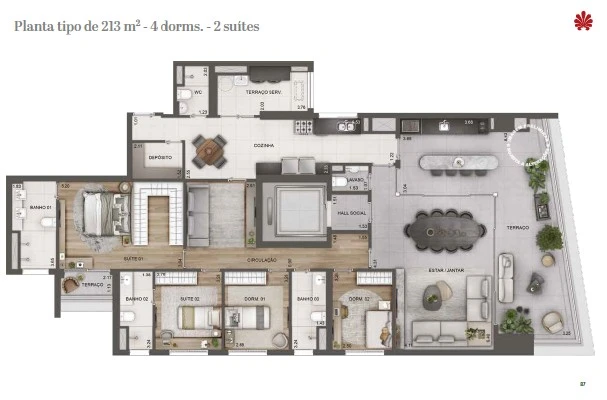 Opções com 3 ou 4 suítes, Alto padrão de acabamento , Terraços generosos, integrados ao living, Infraestrutura para automação e ar-condicionado